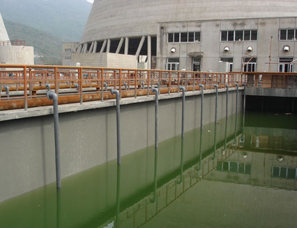 如萊蕪鋼鐵集團的汙水處理池項目便選用了快猫在线观看视频公司新型的噴塗快猫成人交友防水塗料。本項目共5個汙水處理池,全部采用了灰色的噴塗快猫成人交友防水塗料進行防腐、防水處理。由於底材為模板澆注的混凝土,表麵孔洞很多,因此先施工一道聚合物水泥砂漿進行找平。幹燥後施工一道配套底漆,然後噴塗1.5mm的快猫成人交友塗層。施工完後的塗層連續、無接縫,防水效果良好。